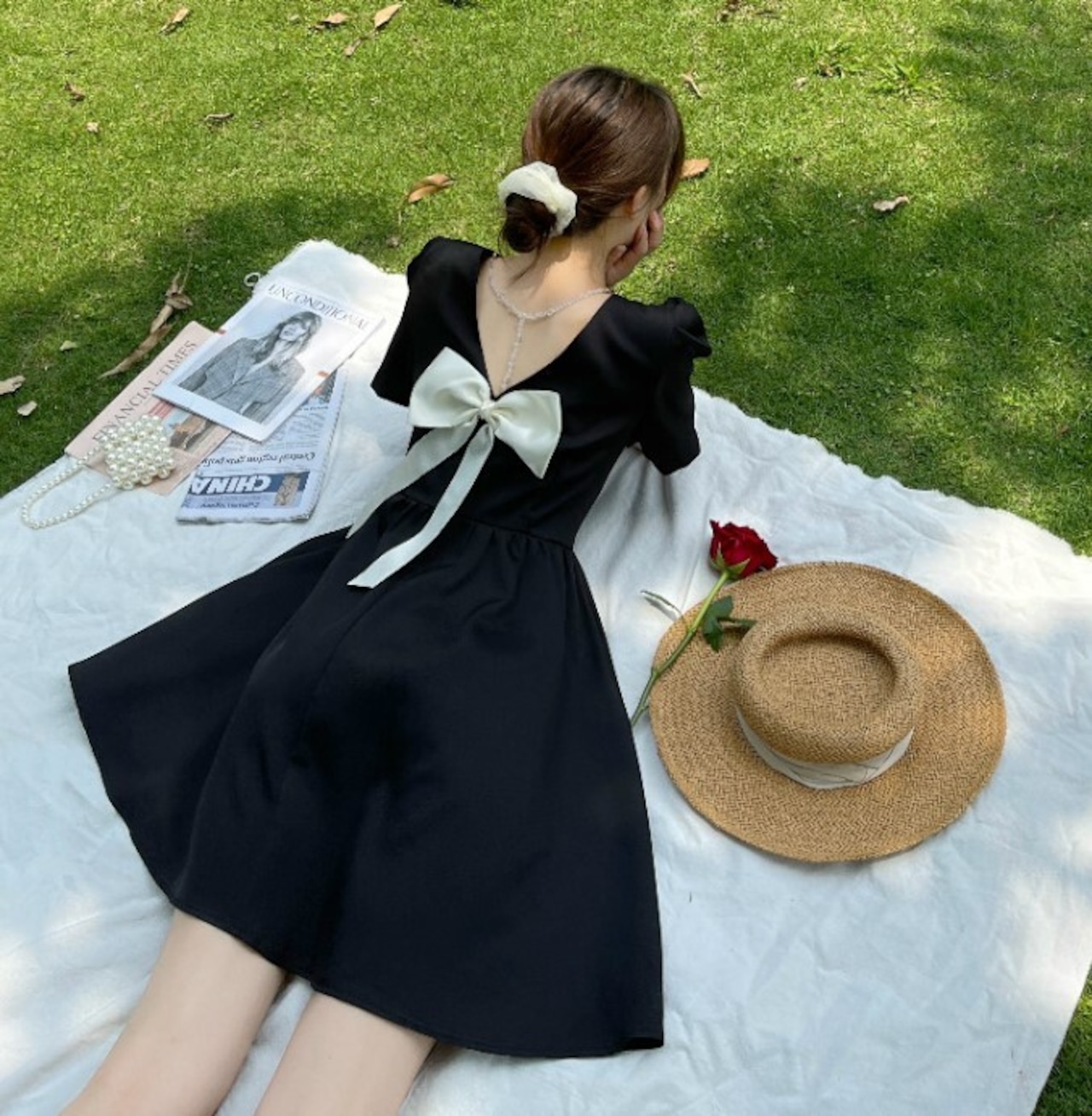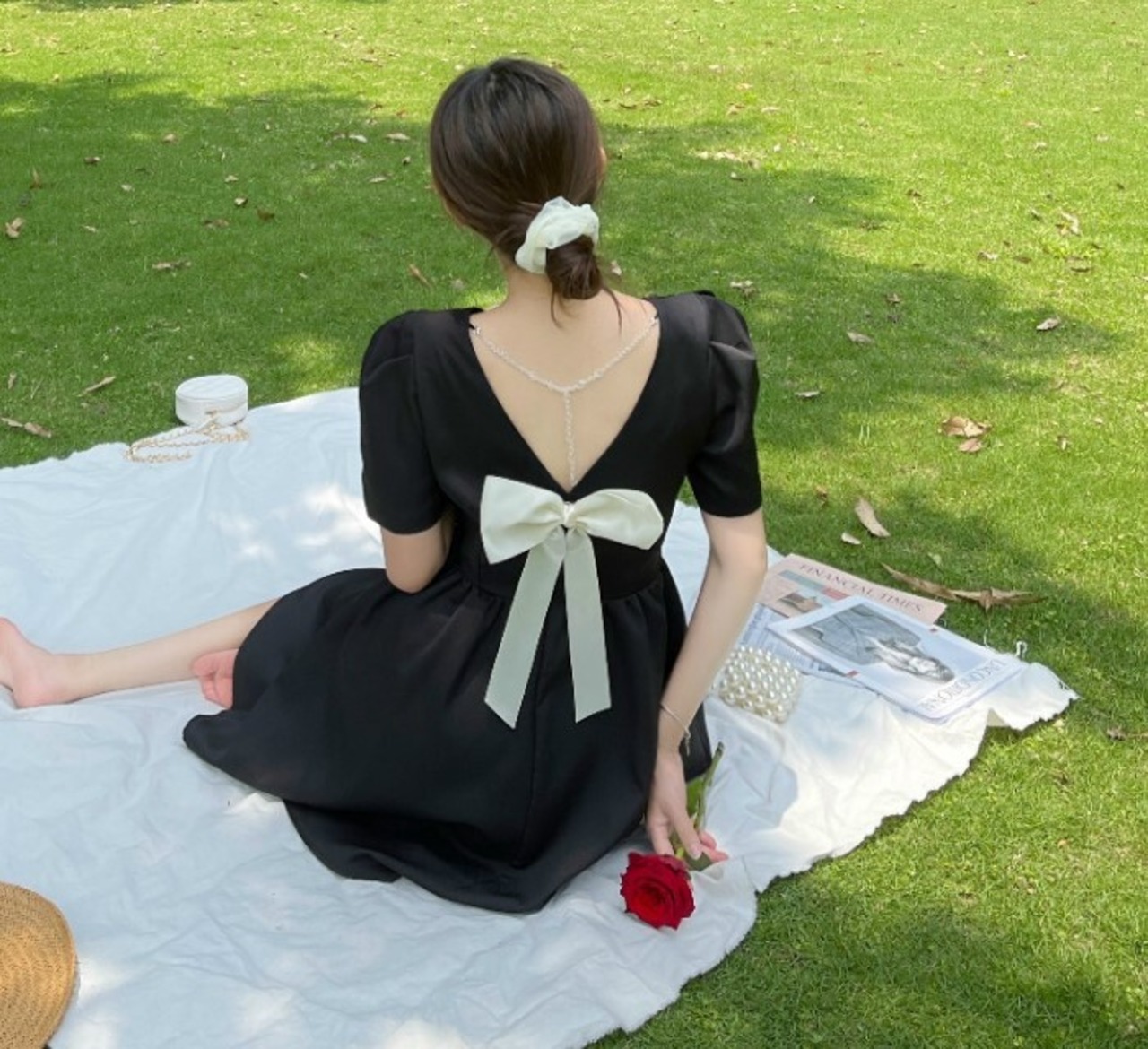 ワンピース レディース 春夏 パーティーワンピース バックオープン ミニ丈 半袖 大きいサイズ リボン Vネック お呼ばれ デート ab2204