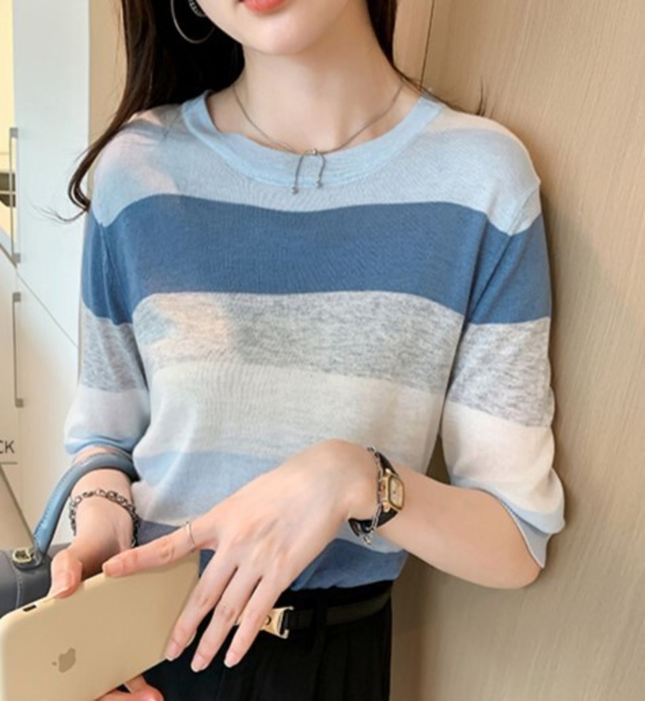 ストライプのTシャツ。