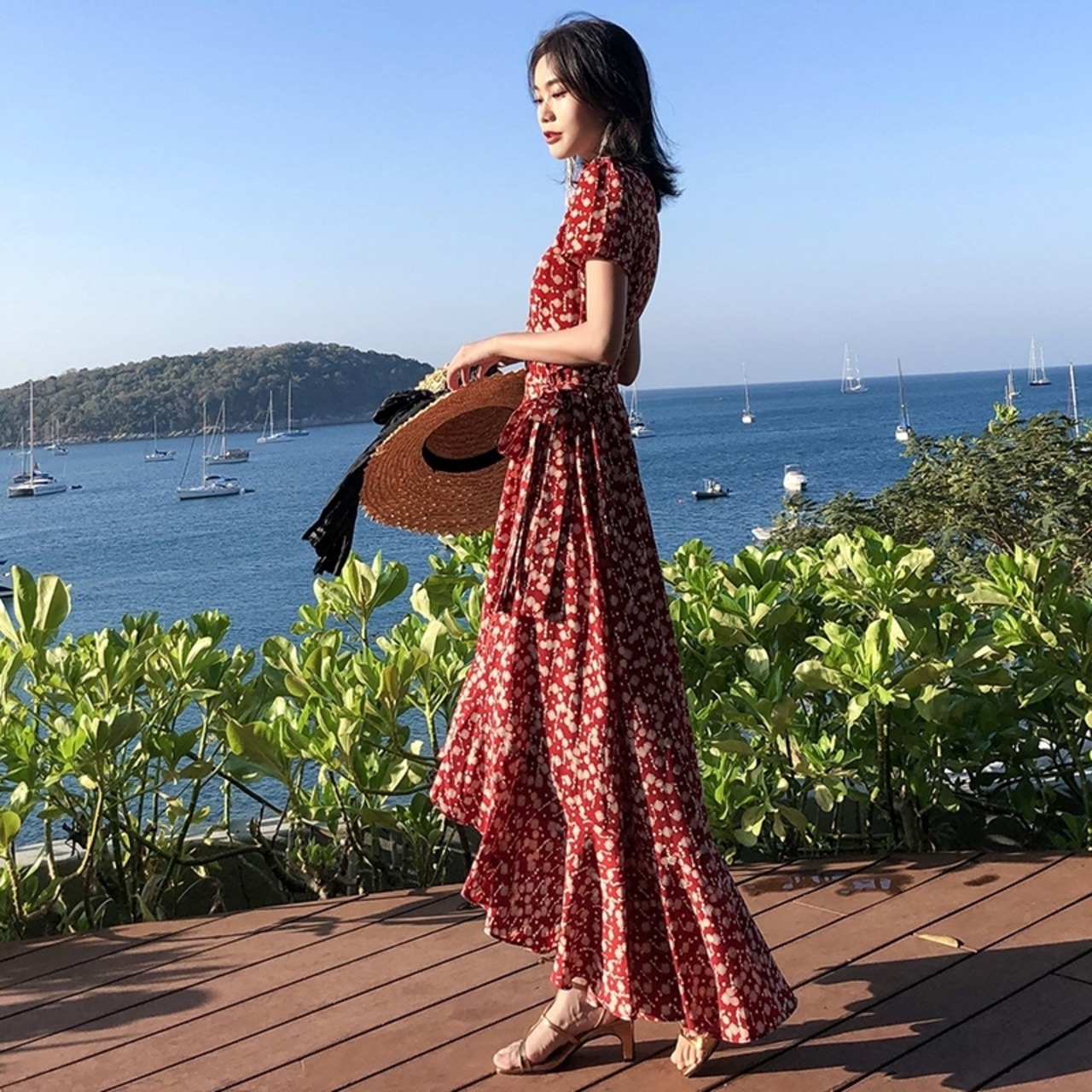 ロングワンピース ワンピース ロング丈 半袖 シフォン マーメイド セクシー 大人可愛い リゾート ママコーデ デート お出かけ MH3388