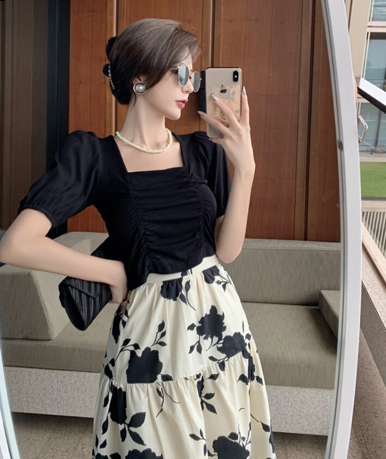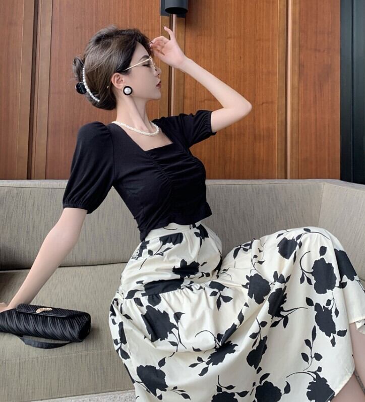セットアップ ツーピース レディース スカート 花柄 スクエアネック シック 春夏 ボアスリーブ オフィス ab2241