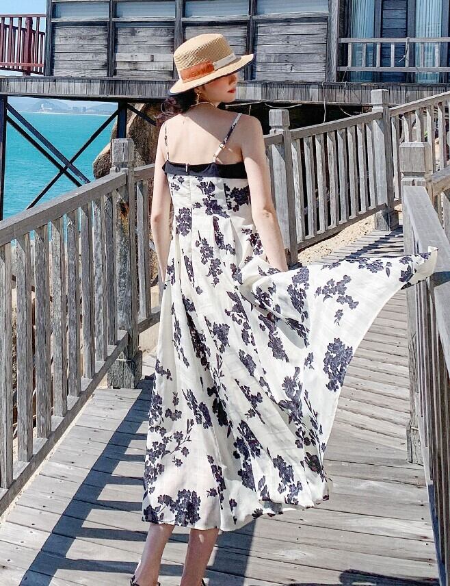 ワンピース キャミワンピ リゾート 春夏 ビーチ ボタニカル ミモレ丈 シック セクシー 旅行 Aライン ab2242