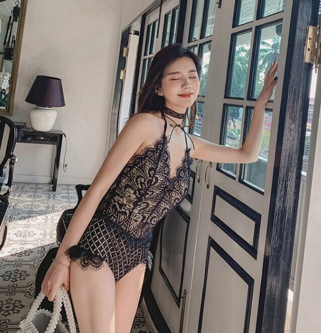 水着 ワンピース水着 レディース セクシー ホルターネック バックオープン レース風 体型カバー シック プチプラ 旅行 ab2246