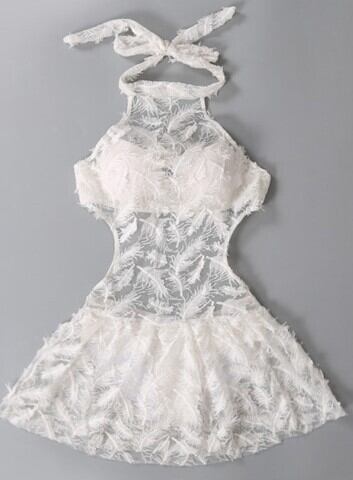 ワンピース水着 水着 レディース ビキニ風 透け感 羽 ウイング ホルターネック バックオープン ガーリー セクシー プチプラ ab2247