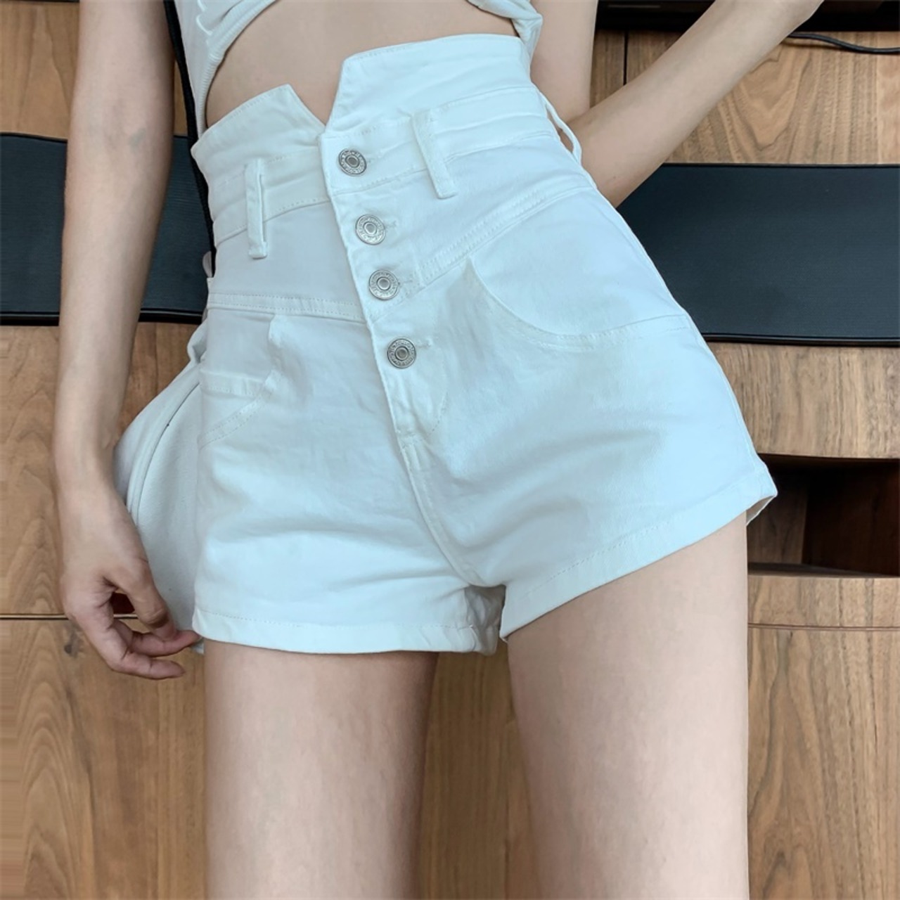 ショートパンツ パンツ ショーパン ハイウエスト ホワイト ブラック 美脚効果 脚長効果 カジュアル 夏 ママコーデ デート お出かけ MH3406