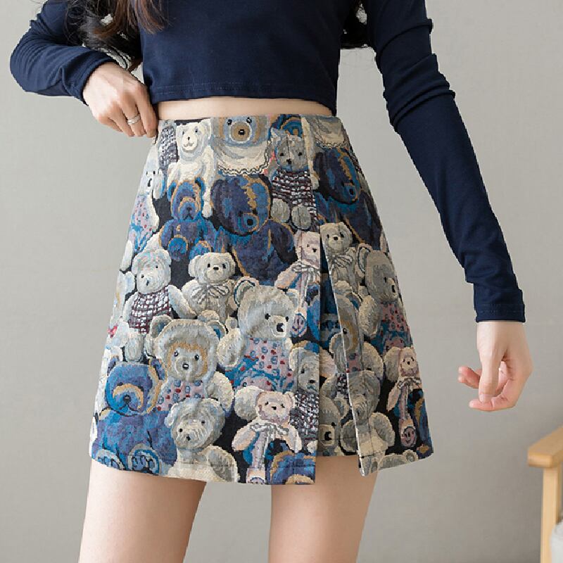 ミニスカート スカート ミニ丈 熊柄 くま ペチパンツ ガーリー カジュアル おしゃれ キュート ママコーデ デート お出かけ MH3409