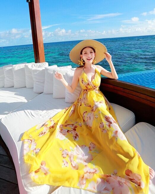 ワンピース リゾートワンピ ワンピ レディース リゾート ロング丈 花柄 エレガント ホルターネック ハイウエスト 旅行 ab2291