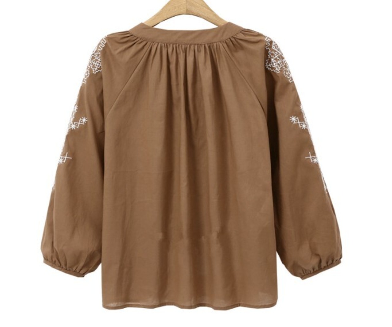 トップス プルオーバー シャツ 大きいサイズ レディース 長袖 春秋 エスニック ボヘミアン 刺繍 ゆったり Vネック カジュアル プチプラ ママコーデ ab2316