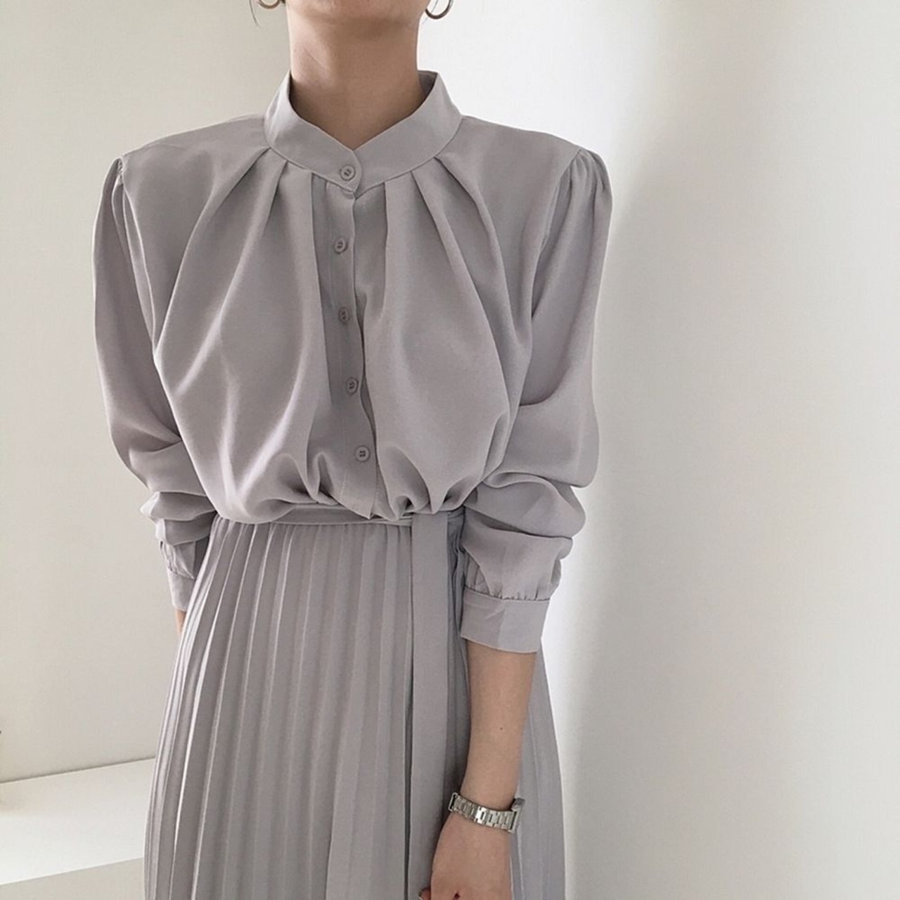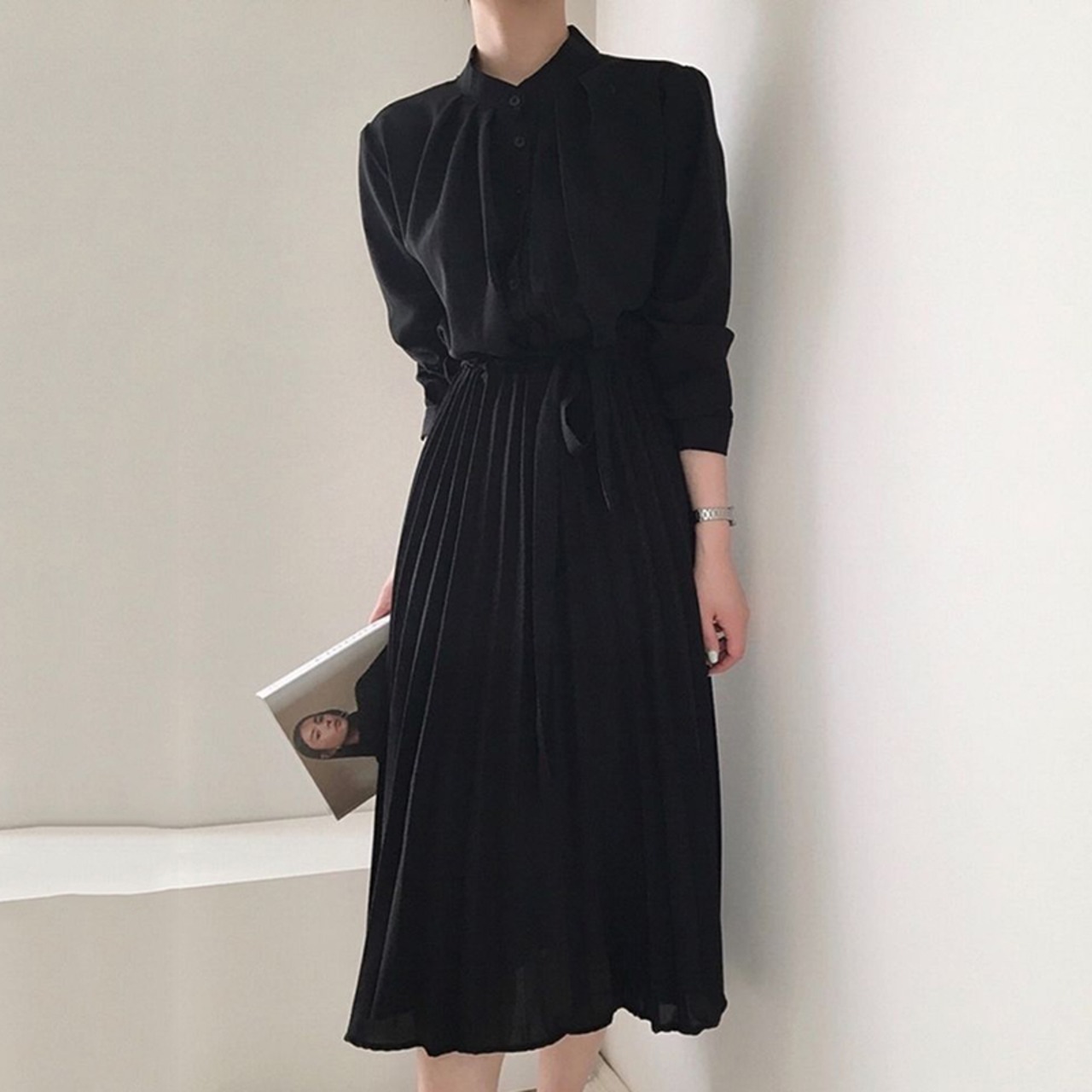シャツワンピース ワンピース ロング丈 長袖 スタンドカラー シック きれいめ 大人可愛い 通勤 ママコーデ デート MH3424