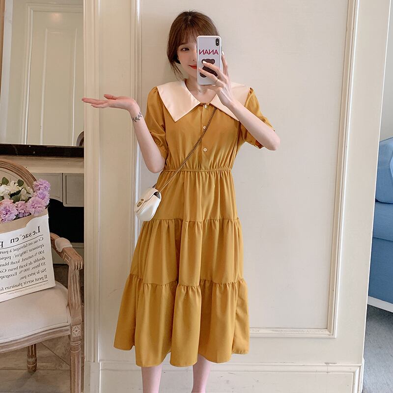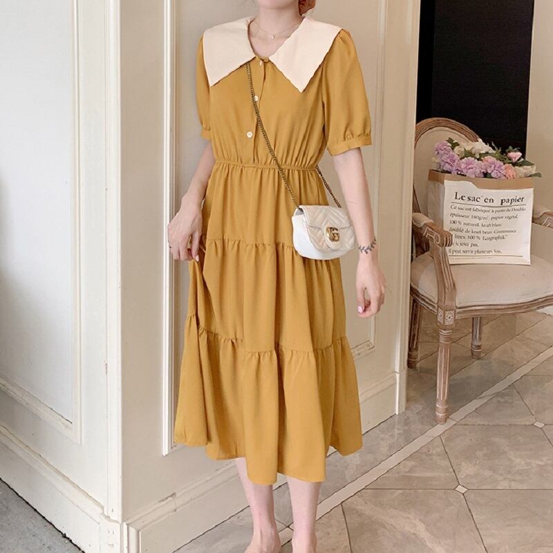 ドールカラーワンピース ワンピース ドールカラー 半袖 ゆったり 大きいサイズ サイズ豊富 レトロ ママコーデ デート お出かけ MH3431