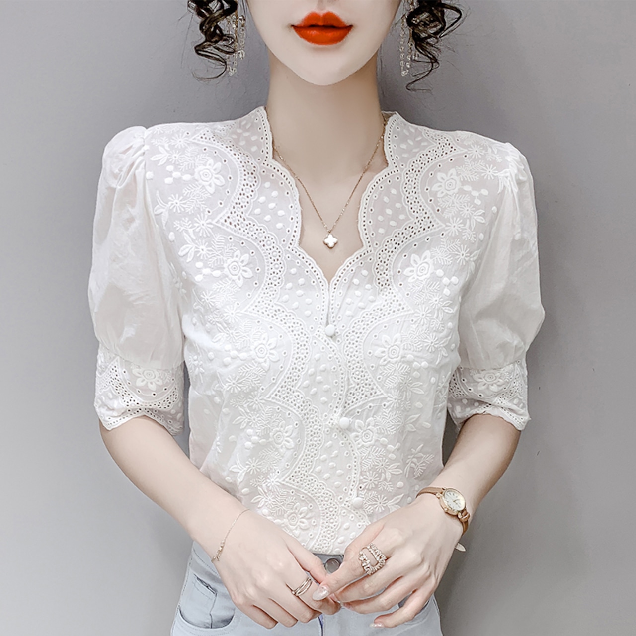 レースブラウス トップス 半袖 レース Vネック きれいめ 大人可愛い おしゃれ 夏 通勤 オフィス ママコーデ デート お出かけ MH3439