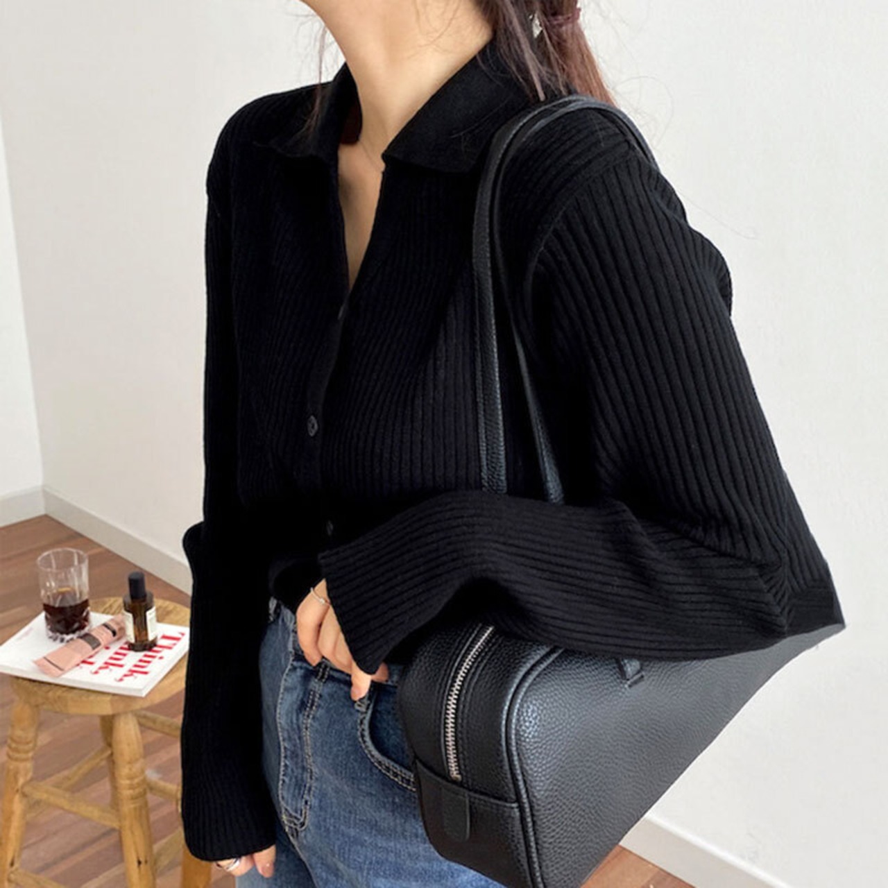 ニットカーディガン トップス ニット カーディガン ポロ襟 Vネック 長袖 秋 シック 大人可愛い ママコーデ デート お出かけ MH3448