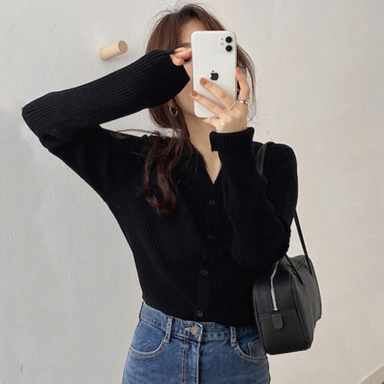 長袖のニットカーディガン。