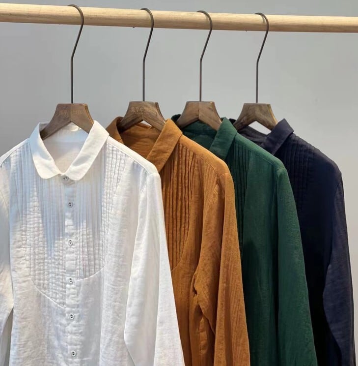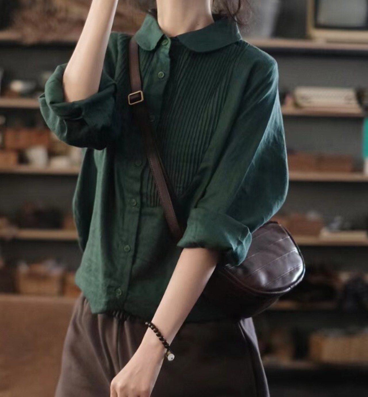 シャツ ブラウス レディース 秋冬 レトロ 無地 アシンメトリー プリーツ ボーダー 長袖 ゆったり カジュアル オフィス ガーリー ab2329