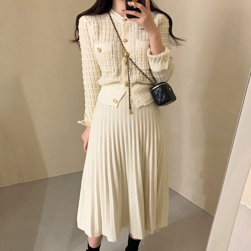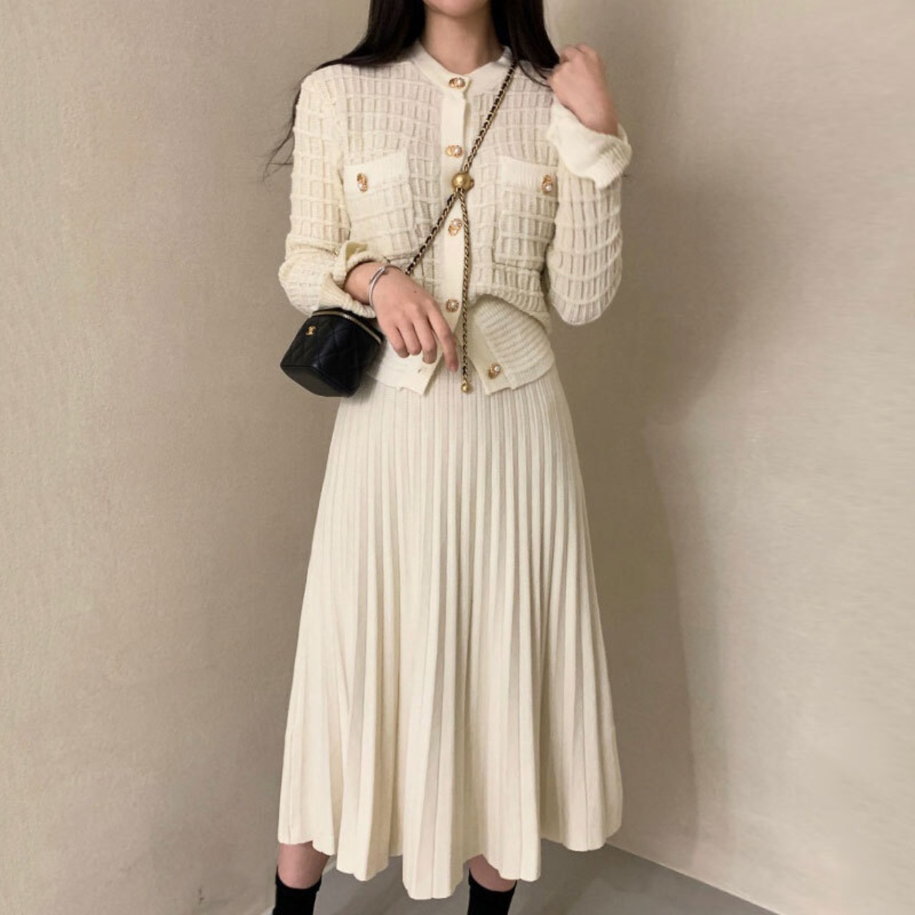 カーディガン トップス ニット セーター ラウンドネック ゴールドボタン シンプル シック 秋冬 ママコーデ デート お出かけ MH3466