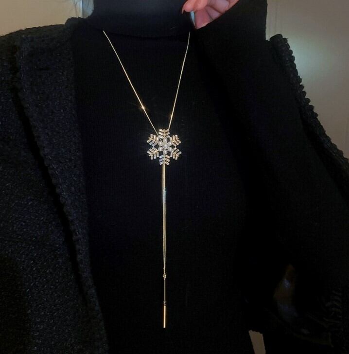 ネックレス レディース 秋冬 プレゼント 雪の結晶 ロング ロングネックレス オフィス シック パーティー チェーン ab2374