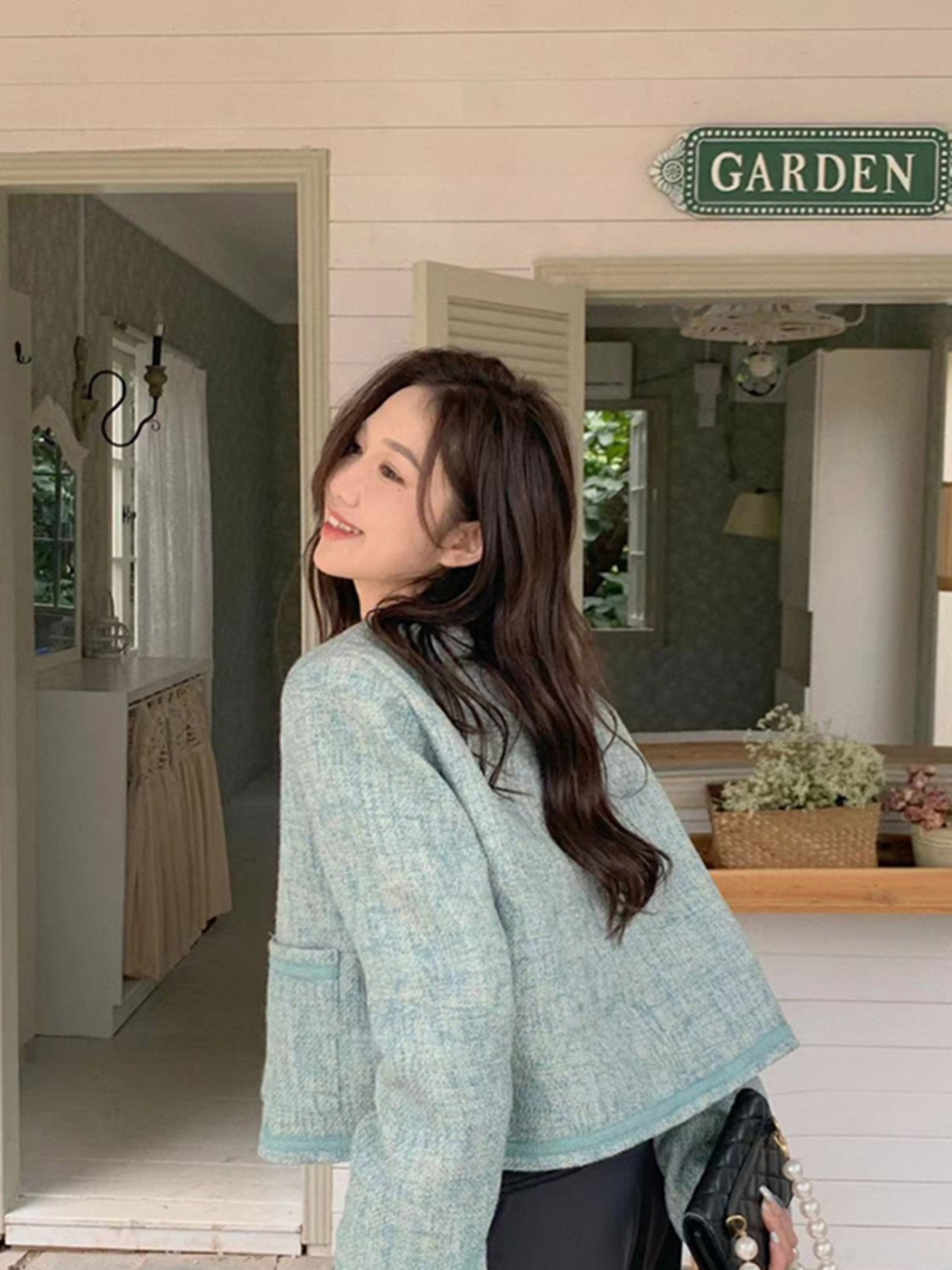 ノーカラーのジャケット。