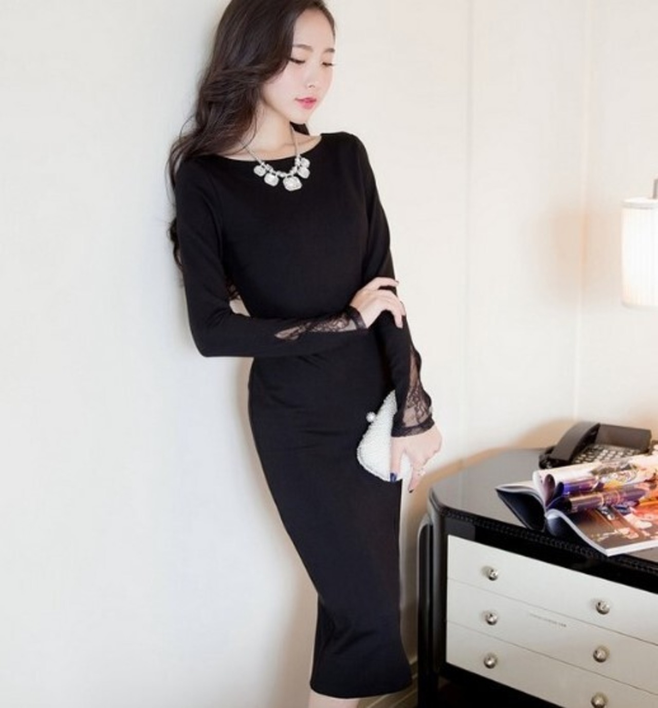 ワンピース ドレス ワンピ ひざ丈 タイトワンピース ラウンドネック バックオープン セクシー レース パーティー ab2383