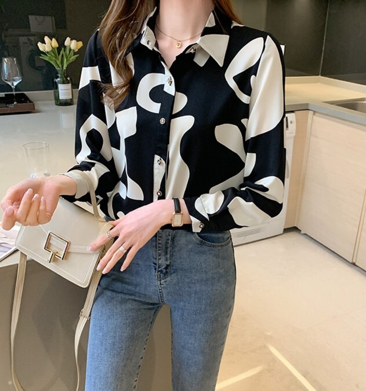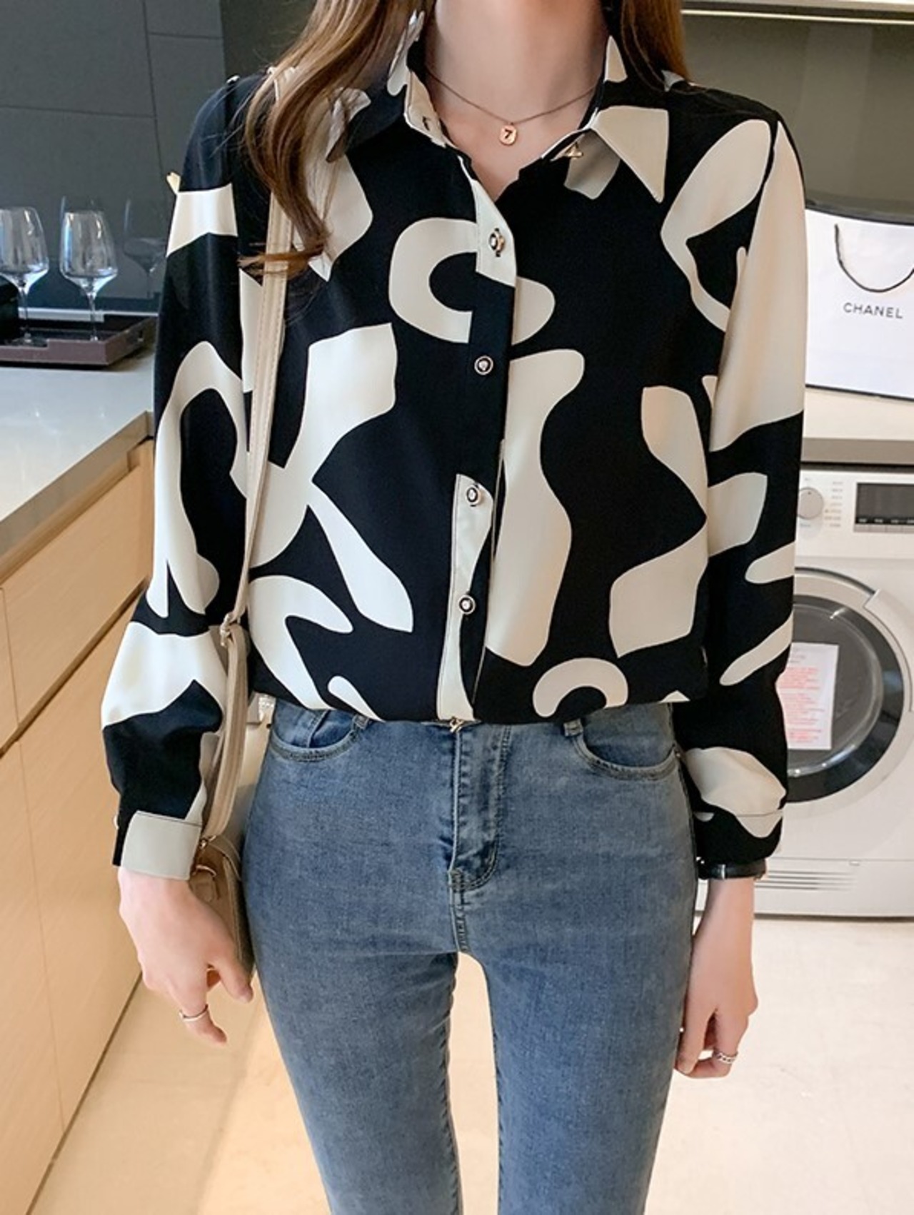 シャツ ブラウス レディース オールシーズン 長袖 ウエスタン風 シフォン オフィス カジュアル ab2386