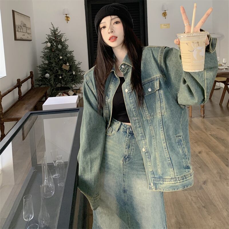 デニムジャケット アウター デニム ジャケット ジージャン ゆったり おおきめ カジュアル レトロ ママコーデ デート お出かけ MH3539