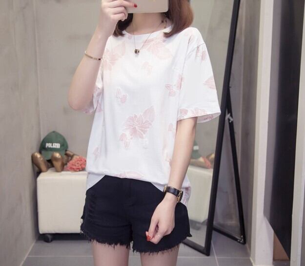 Tシャツ トップス レディース 大きいサイズ 半袖 花柄 春夏 ラウンドネック ゆったり ハイビスカス カジュアル ab2412