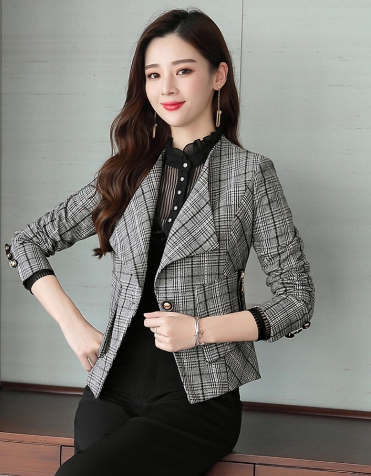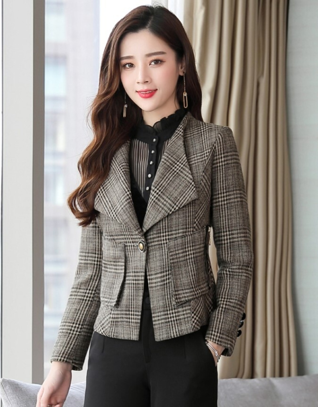 ジャケット レディース チェック 格子柄 長袖 春秋 オフィス 清楚 ボタン 通勤 細身 プチプラ ab2435