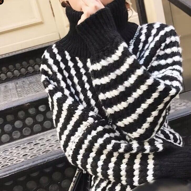 セーター ニット レディース 長袖 ストライプ ボーダー タートルネック 秋冬 ゆったり ガーリー プチプラ ab2436