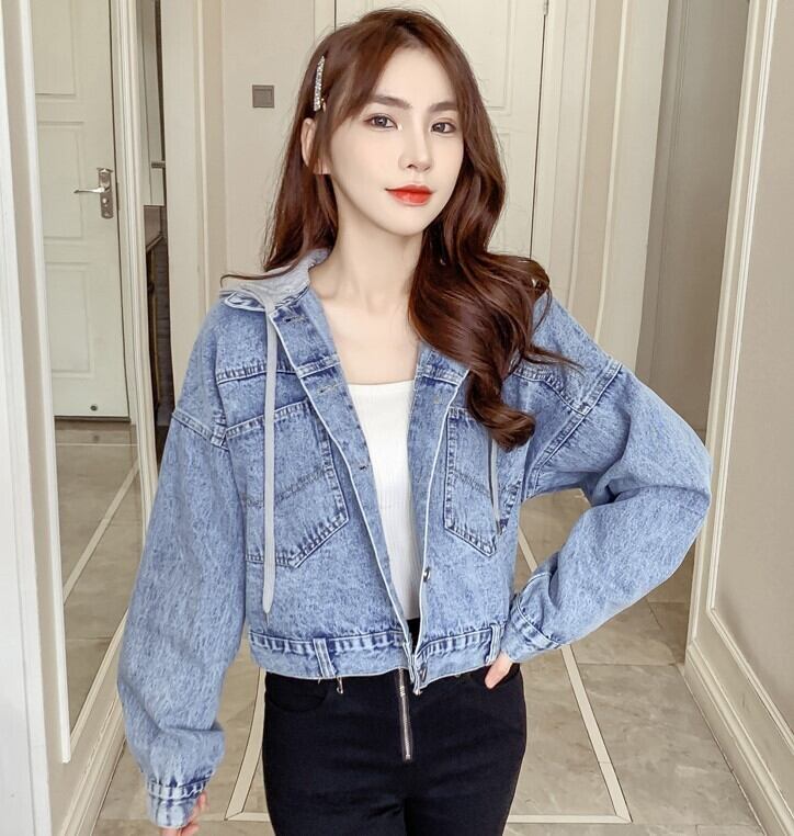 Gジャン デニムジャケット デニム レディース フード付き 長袖 春秋 バイカラー カジュアル レトロ ガーリー ポケット ab2437