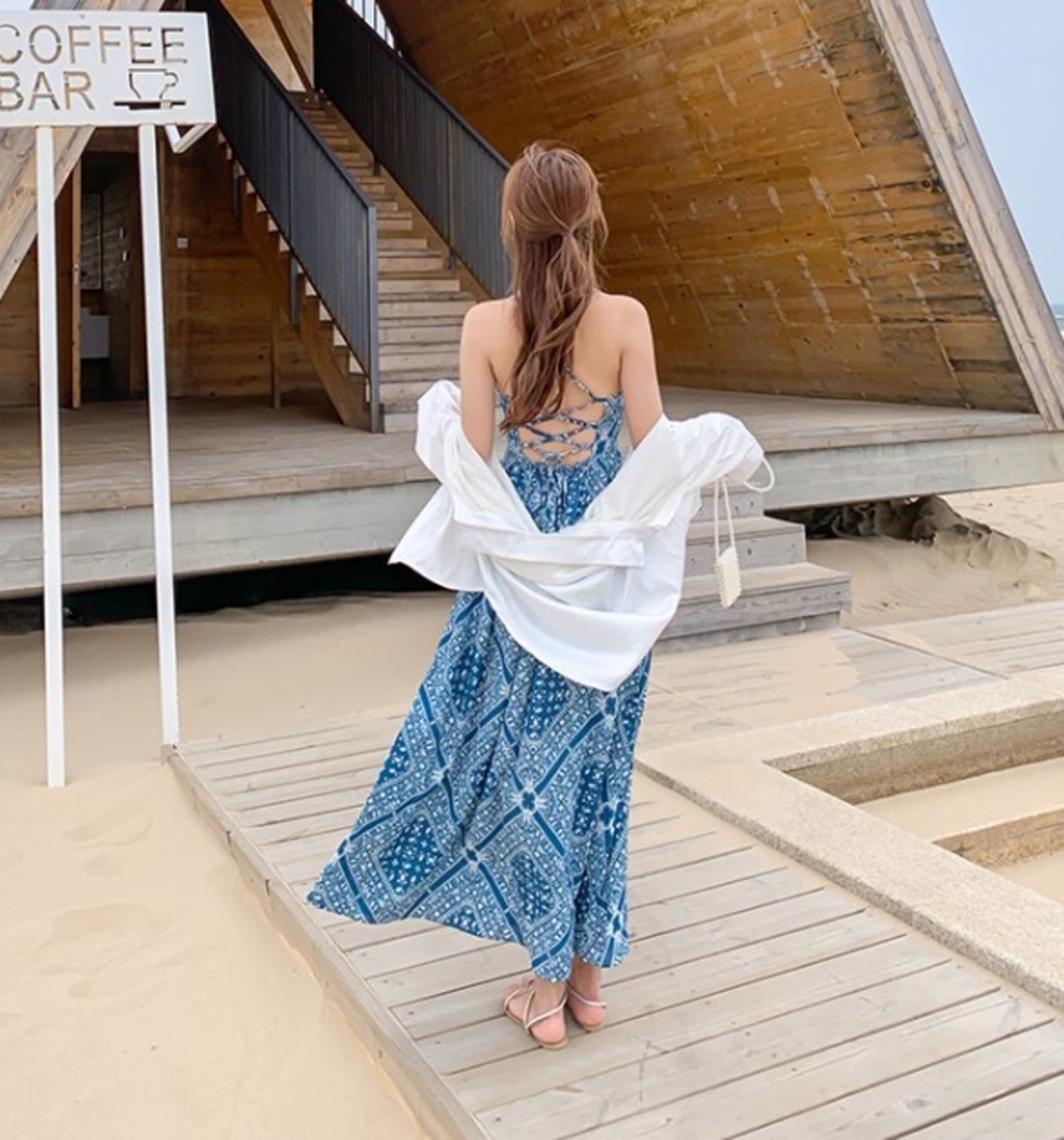キャミワンピース キャミワンピ ワンピース レディース ロング丈 バックオープン バックコンシャス ボヘミアン リゾート 海 旅行 セクシー エスニック ab2480