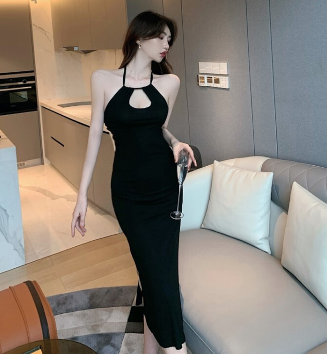ワンピース ワンピースドレス タイトワンピ ホルターネック バックオープン レディース セクシー ひざ丈 無地 シック ab2496