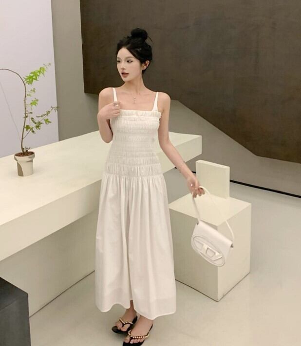 ワンピース キャミワンピ レディース ロング丈 フェイクツーピース 体型カバー 無地 Aライン ハイウエスト ガーリー 春夏 ab2505