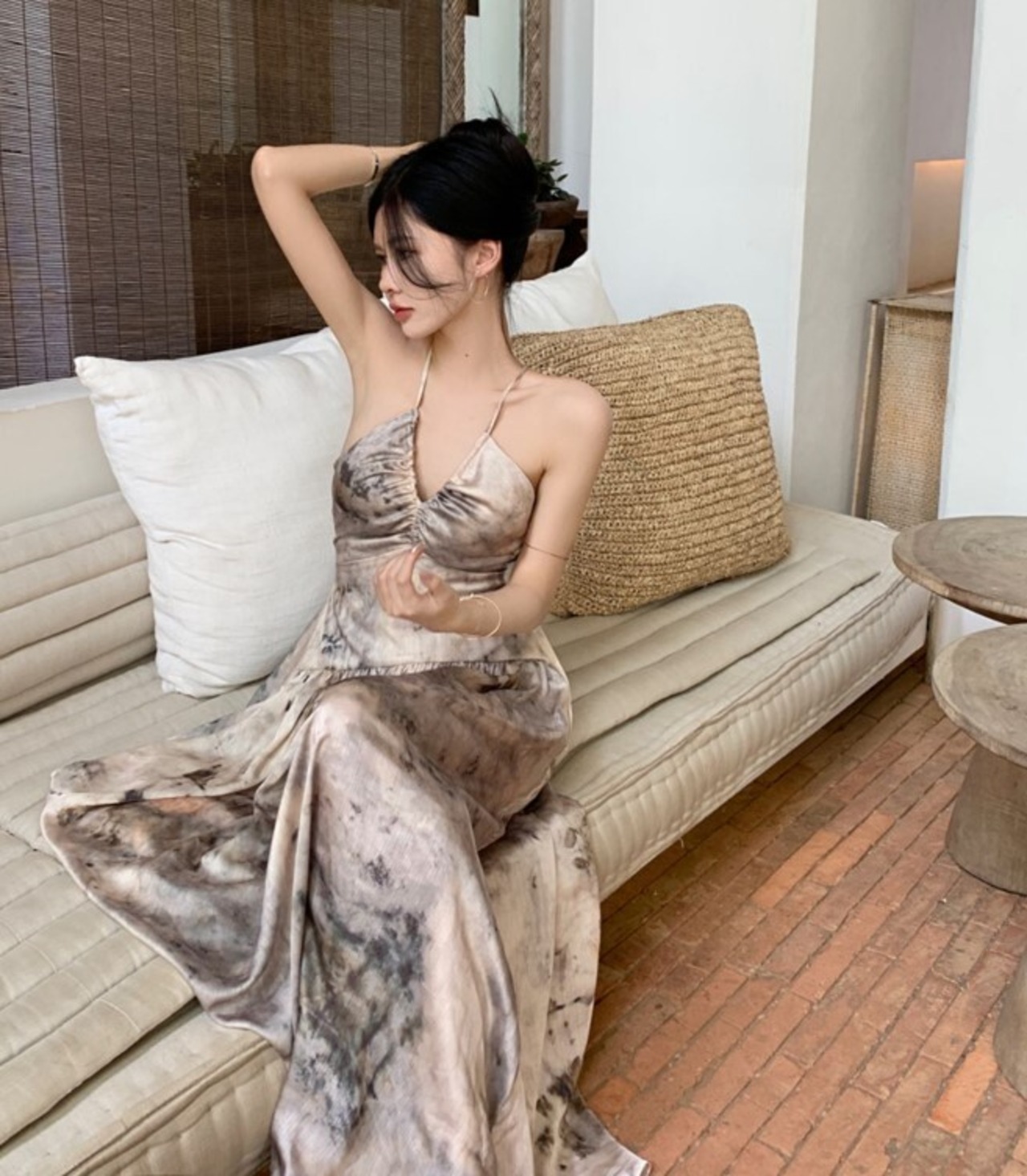 ワンピース リゾートワンピ レディース ロング丈 バックコンシャス ホルターネック セクシー 旅行 ビーチ バッククロス 夏ワンピ Aライン ab2507