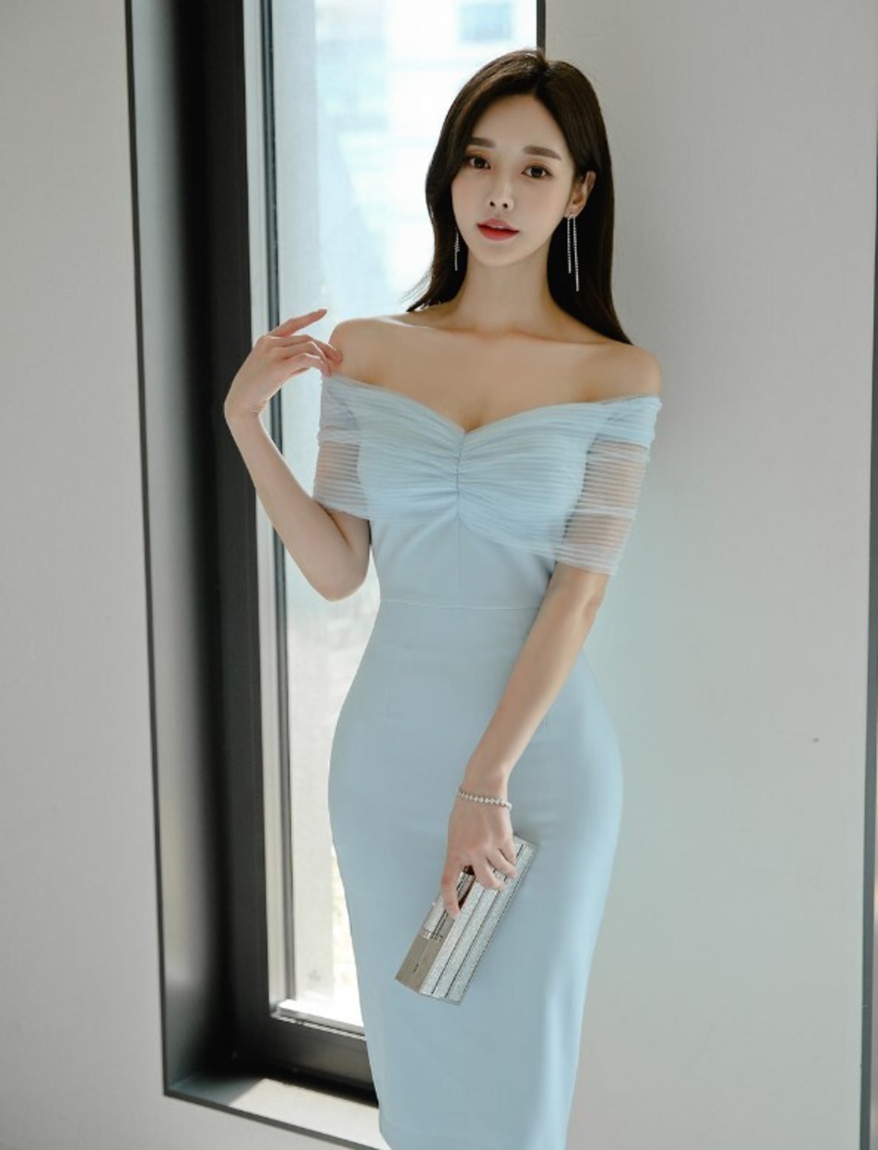 ワンピースドレス ワンピース タイトワンピ セクシー レディース オフショルダー ひざ丈 無地 スリット パーティー お呼ばれ エレガント ab2515
