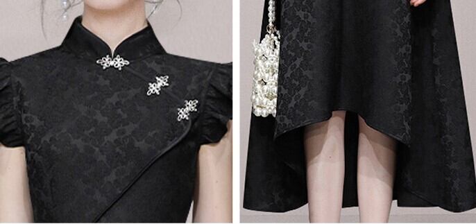 チャイナドレス チャイナワンピース ワンピース レディース シック ひざ丈 アシンメトリー パーティー 結婚式 二次会 お呼ばれ ハイウエスト ab2516