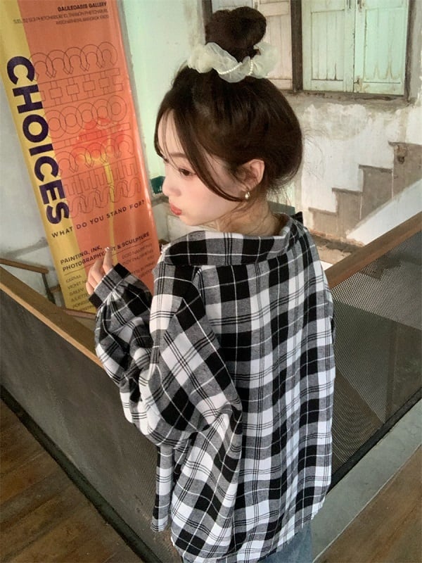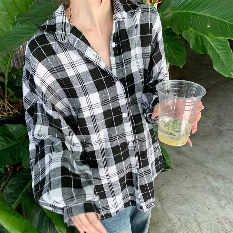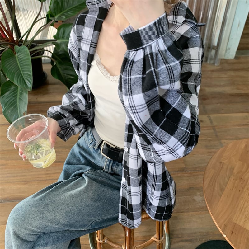 カラーチェックシャツ トップス 長袖 チェック柄 カラー ポロ襟 レディース カジュアル 夏 デート お出かけ MH3572