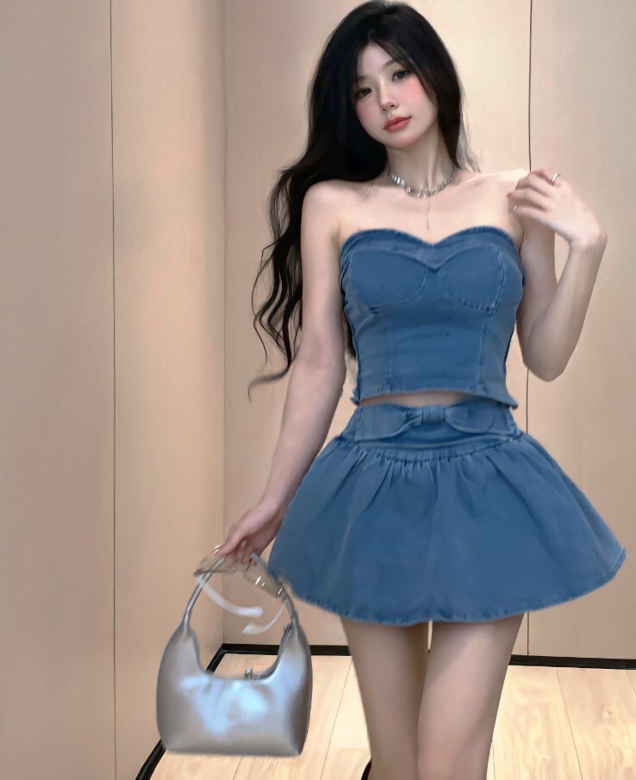 セットアップ ツーピース デニム チューブトップ ミニ丈 スカート デニムスカート カジュアル セクシー リボン 春夏 プチプラ ab2522