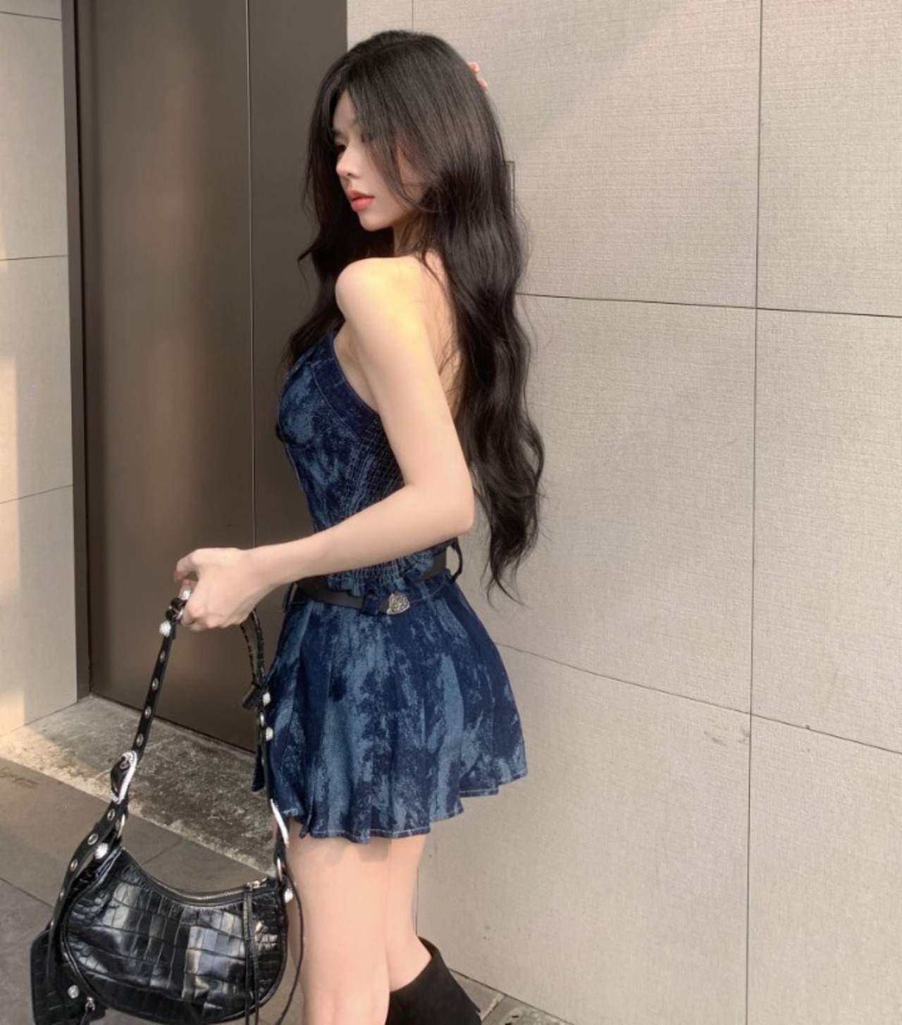 セクシーなデニムのセットアップ。