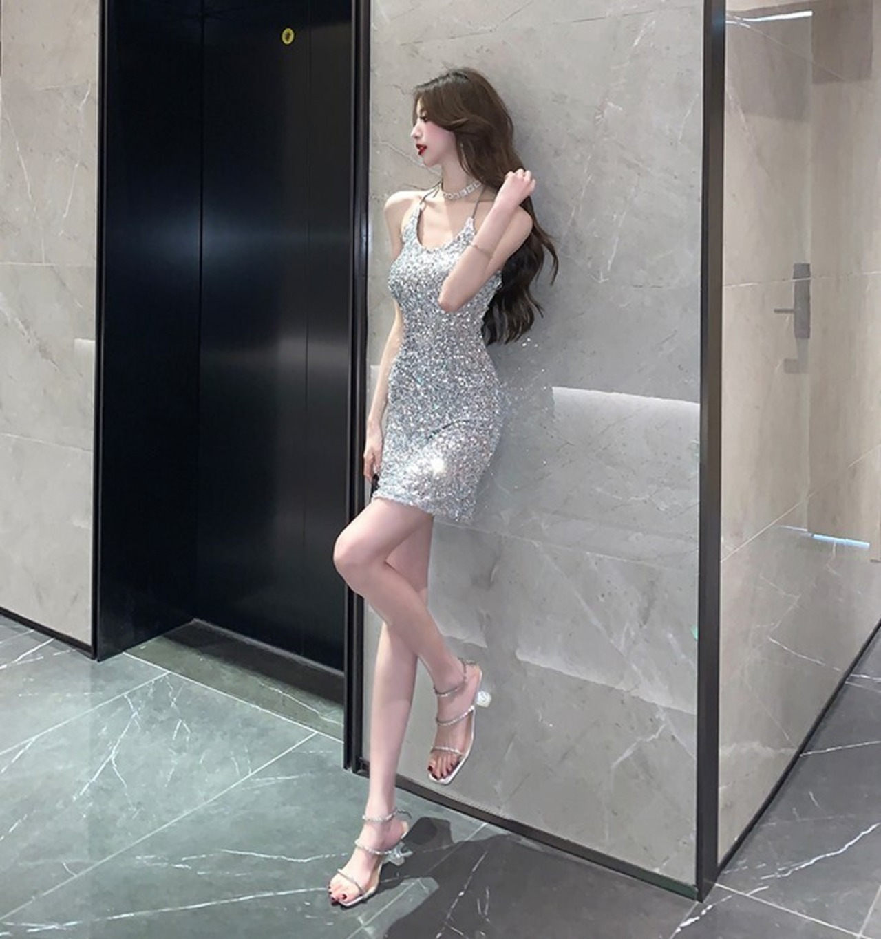 ワンピース ワンピースドレス レディース ホルターネック ラメ キャミワンピ ミニ丈 パーティー お呼ばれ ゴージャス ab2525