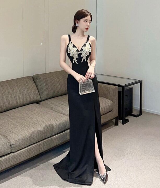 ドレス ワンピースドレス ロング丈 キャミワンピ エレガント レディース Vネック パーティー お呼ばれ スリット ハイウエスト エレガント ab2528