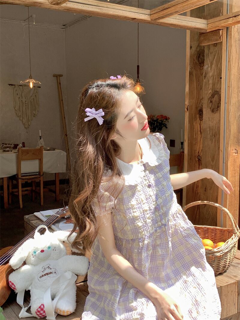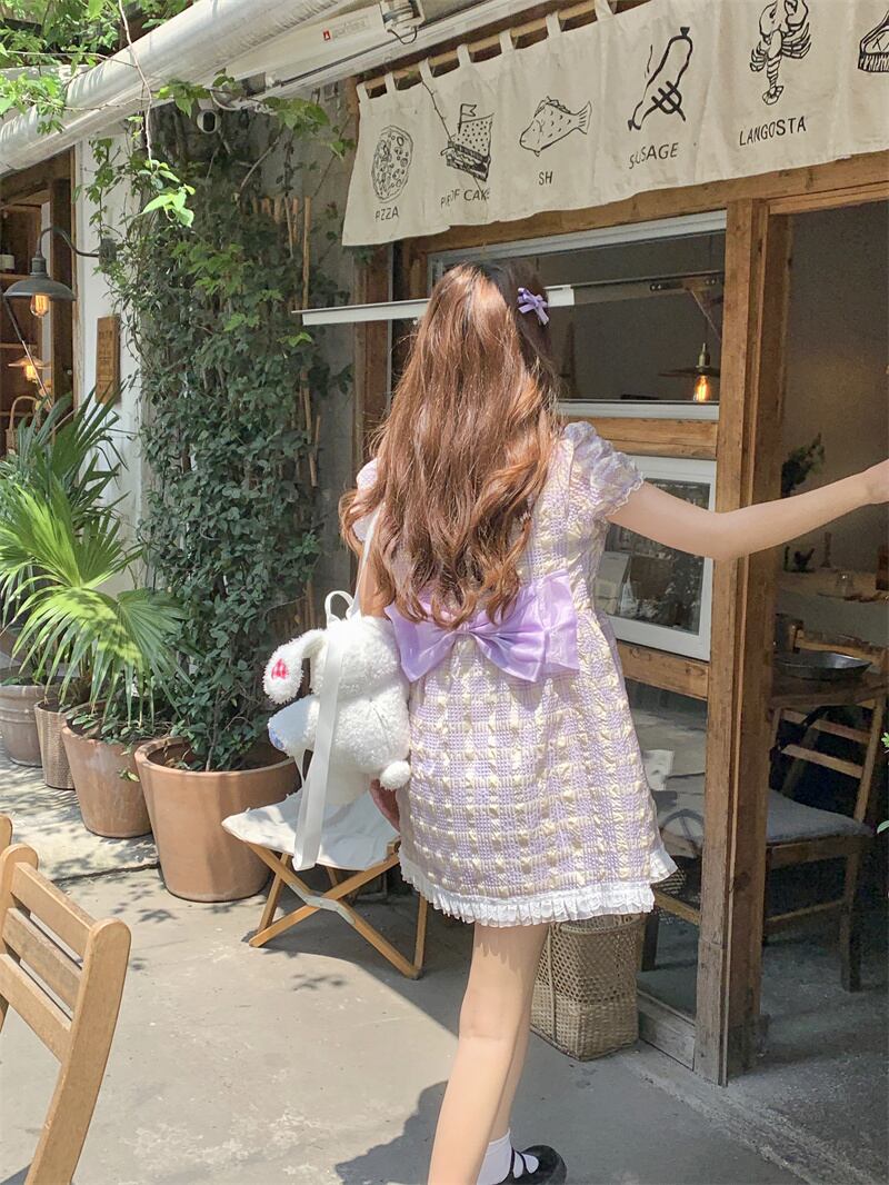 チェック柄ワンピース ワンピース 半袖 ミニ丈 ドールカラー チェック柄 バックリボン リボン付き Aライン ガーリー ドーリー 人形 デート MH3586