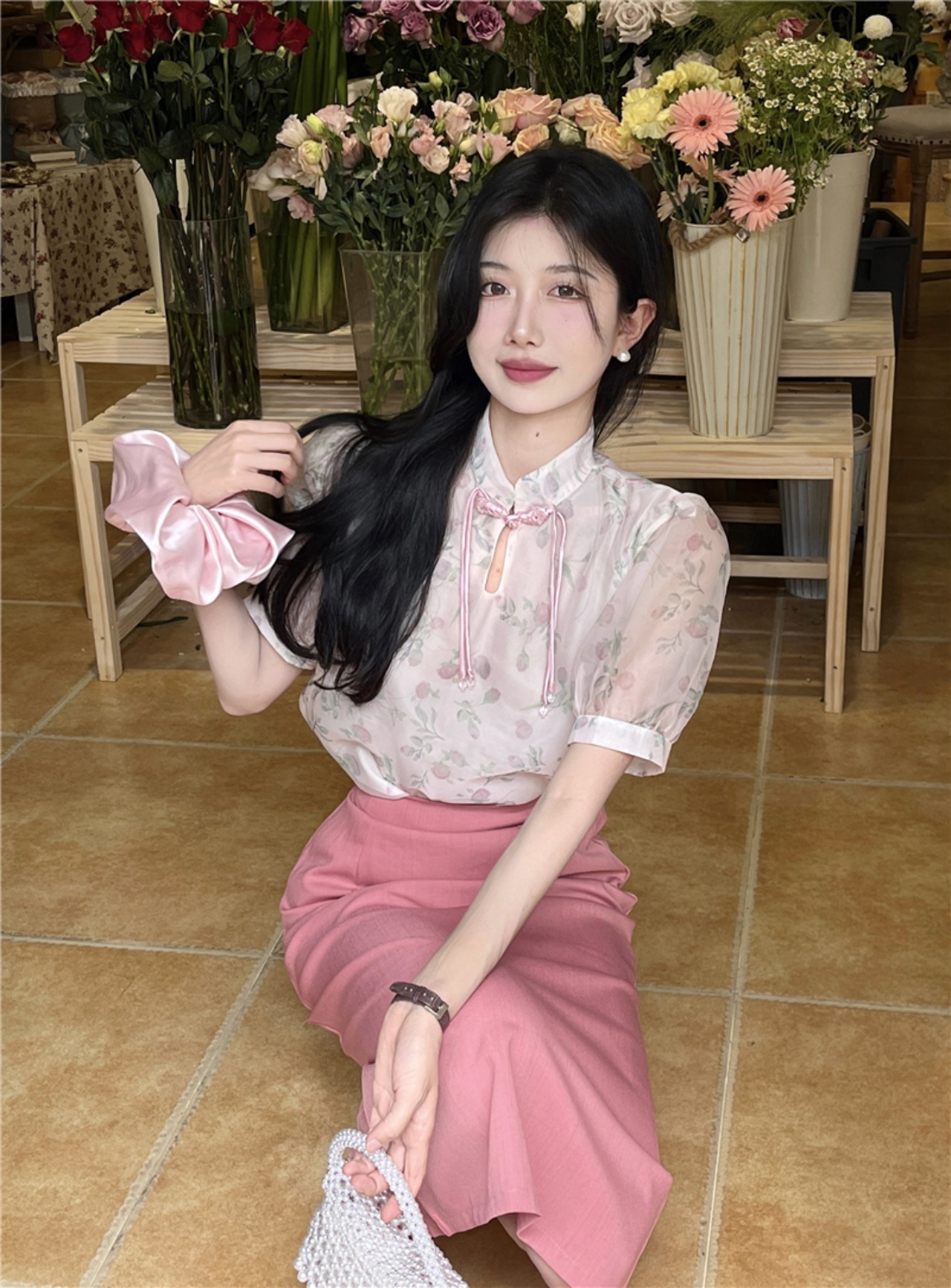 花柄ブラウス トップス 半袖 花柄 ブラウス フラワー シアー 透け感 夏 ママコーデ デート お出かけ MH3588
