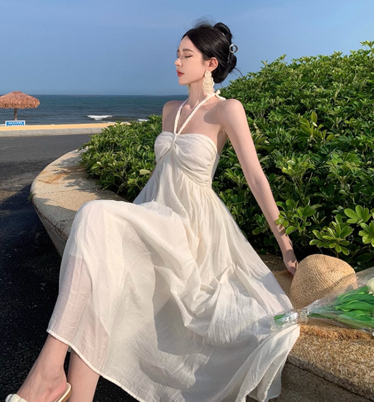 無地で清楚なリゾートワンピース♪
