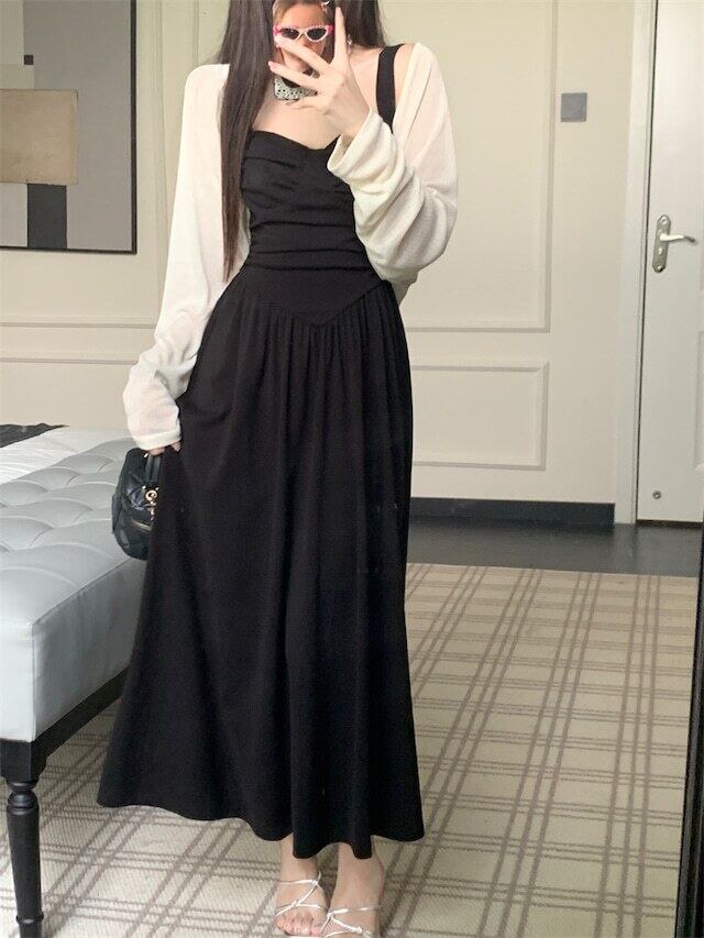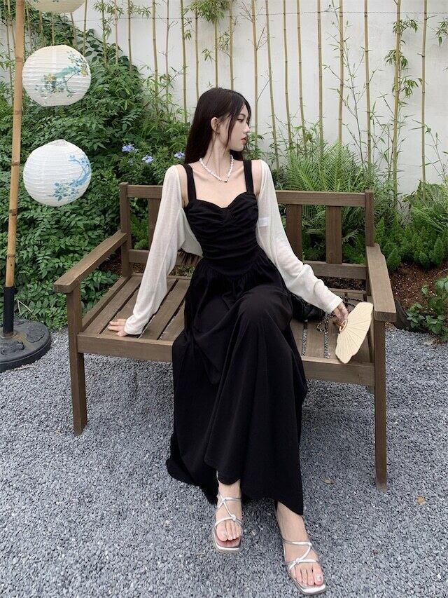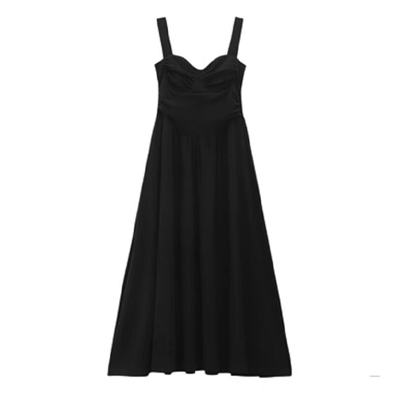 ノースリーブロングワンピース ワンピース ロング丈 ノースリーブ ブラック シンプル 無地 シック Aライン 大人可愛い ママコーデ デート お出かけ MH3596