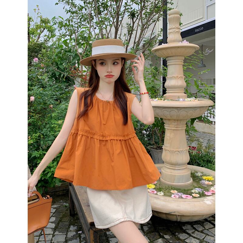 ノースリーブブラウス トップス ノースリーブ ブラウス フリル ショート丈 夏 レディース 無地 シンプル ママコーデ デート お出かけ MH3621