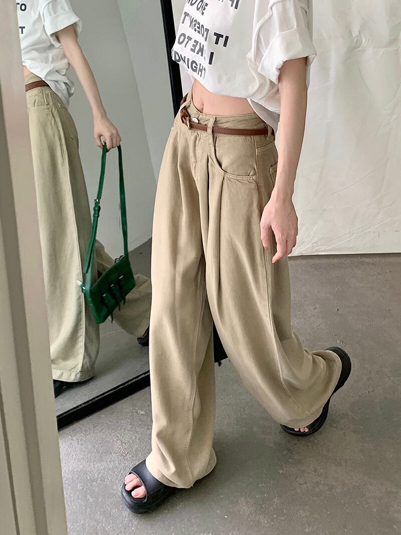 ルーズワイドパンツ パンツ ワイドレッグ ルーズ ハイウエスト ロング丈 カジュアル 夏 レディース 美脚 ママコーデ デート お出かけ MH3625