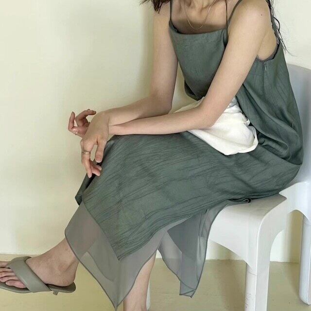 キャミソールワンピース ワンピース キャミワンピ ノースリーブ ロング丈 サイドスリット シック 夏 レディース ママコーデ デート お出かけ MH3635