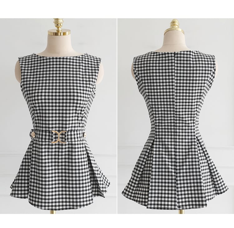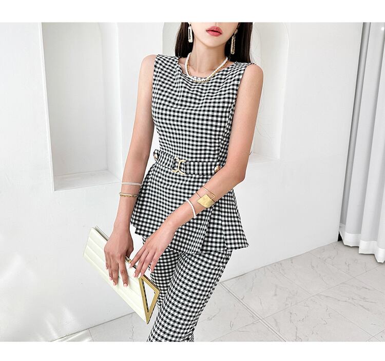 ノースリーブチェックセットアップ セットアップ チェック柄 ノースリーブ パンツ エレガント シック 夏 レディース オフィス お呼ばれ MH3640