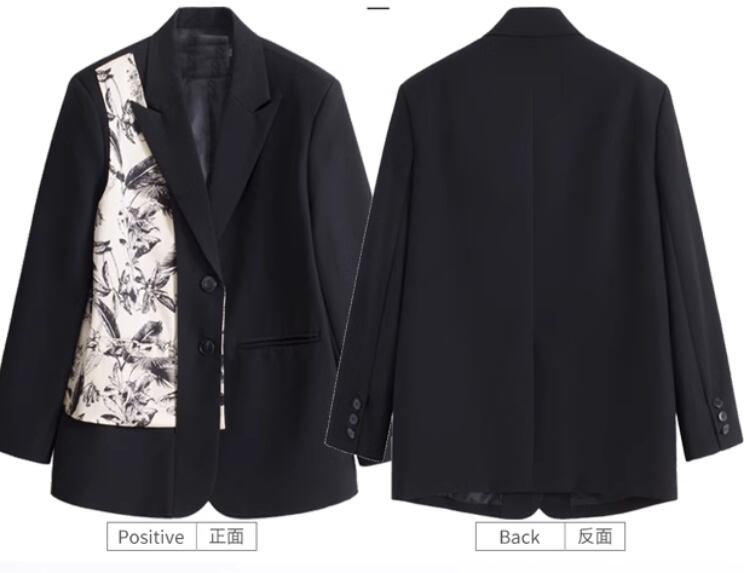 ジャケット スーツ風 春秋 レディース ゆったり カジュアル シック ボタニカル 異素材MIX プチプラ ab2572