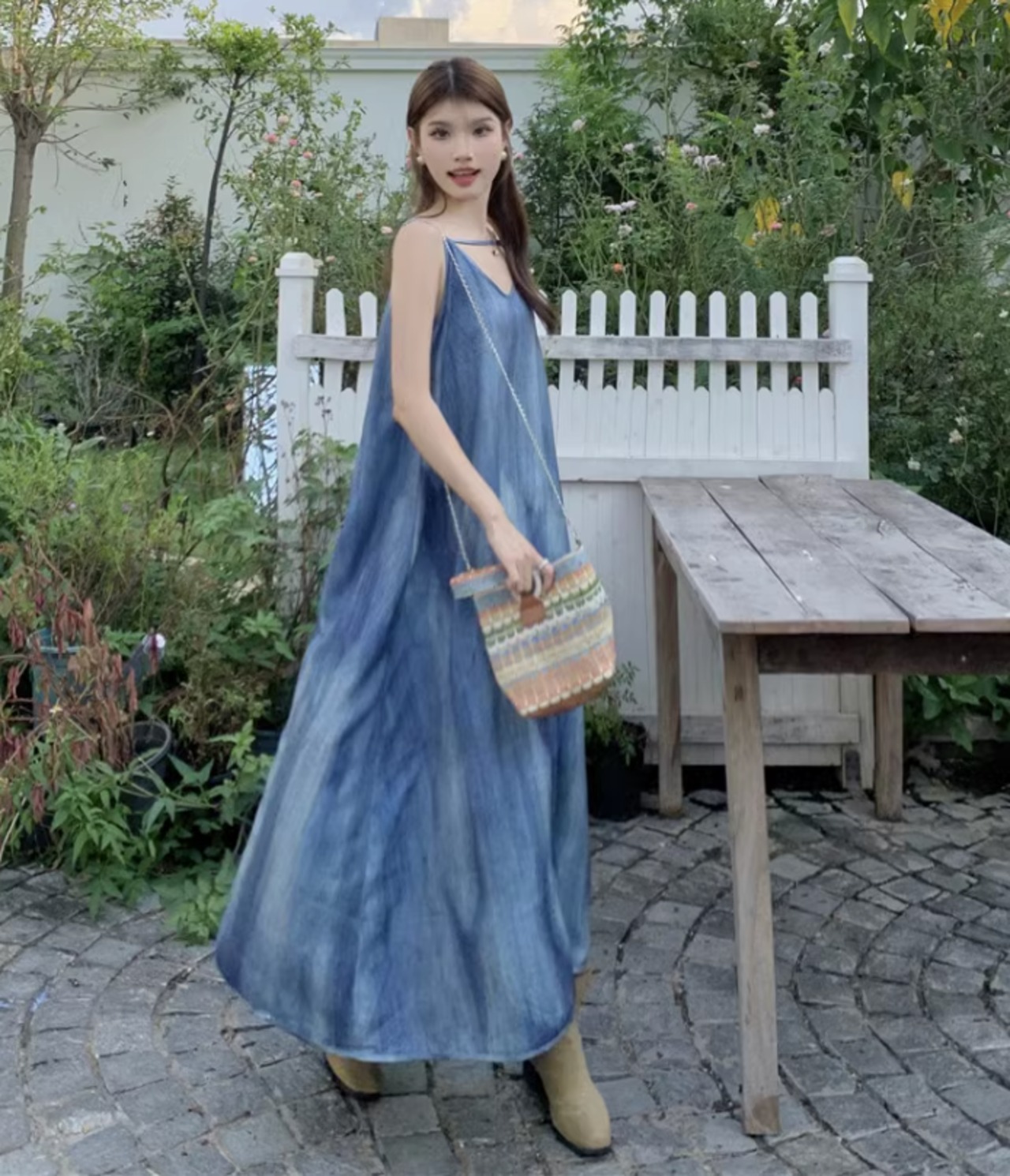 ワンピース レディース リゾートワンピ 夏ワンピ ロング丈 リゾート 海 旅行 キャミワンピ 染め感 ゆったり カジュアル ab2619