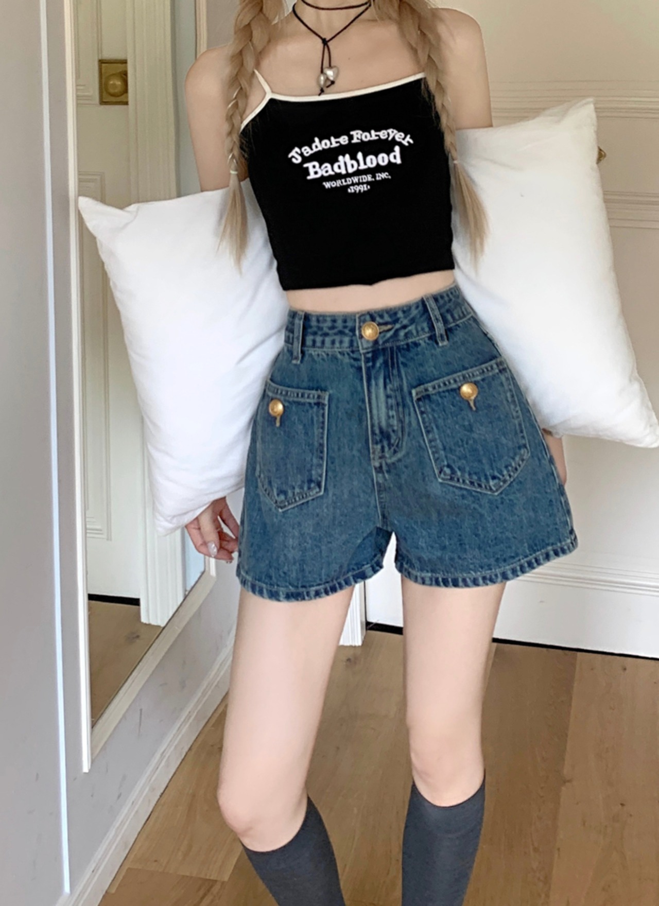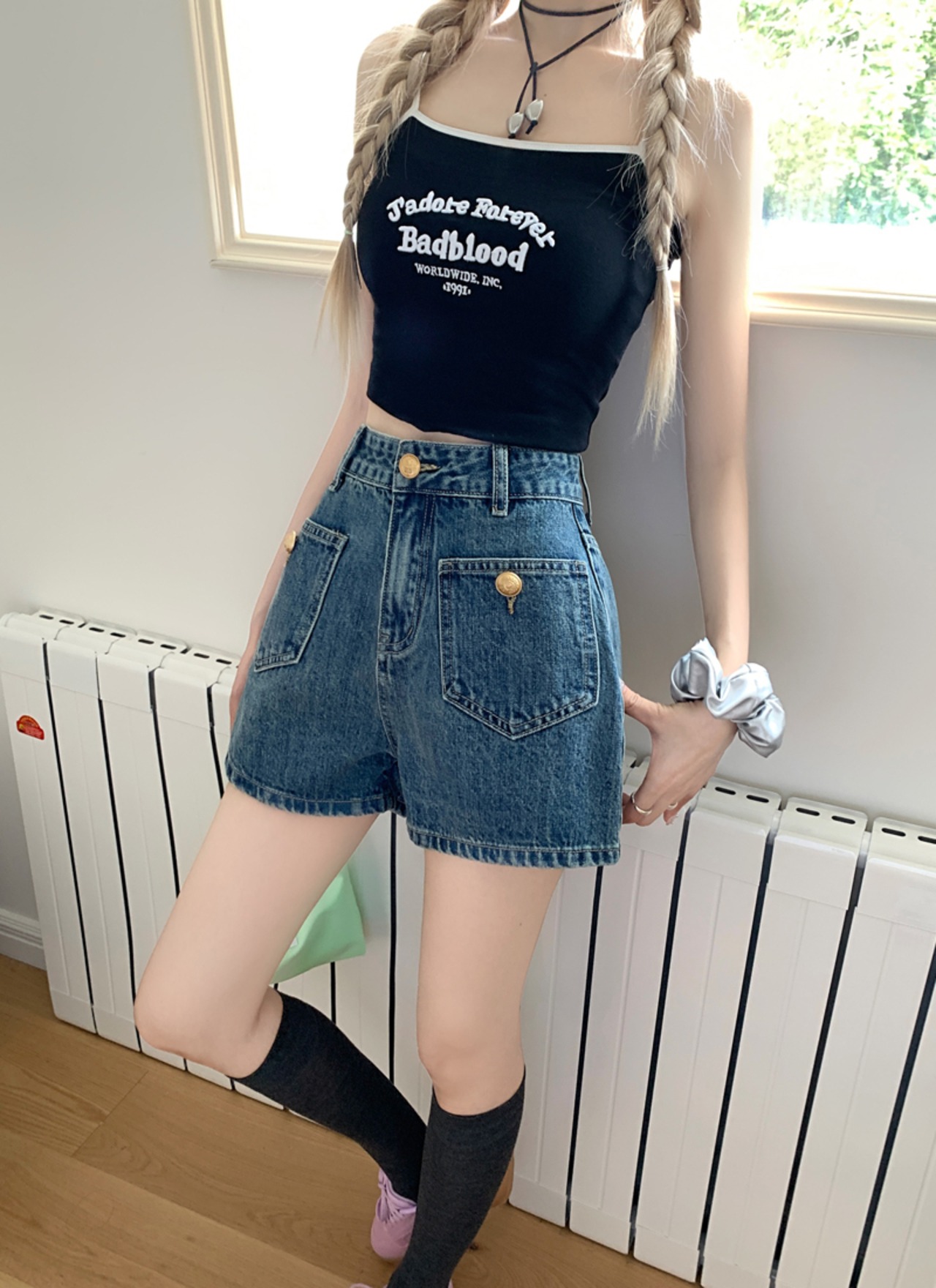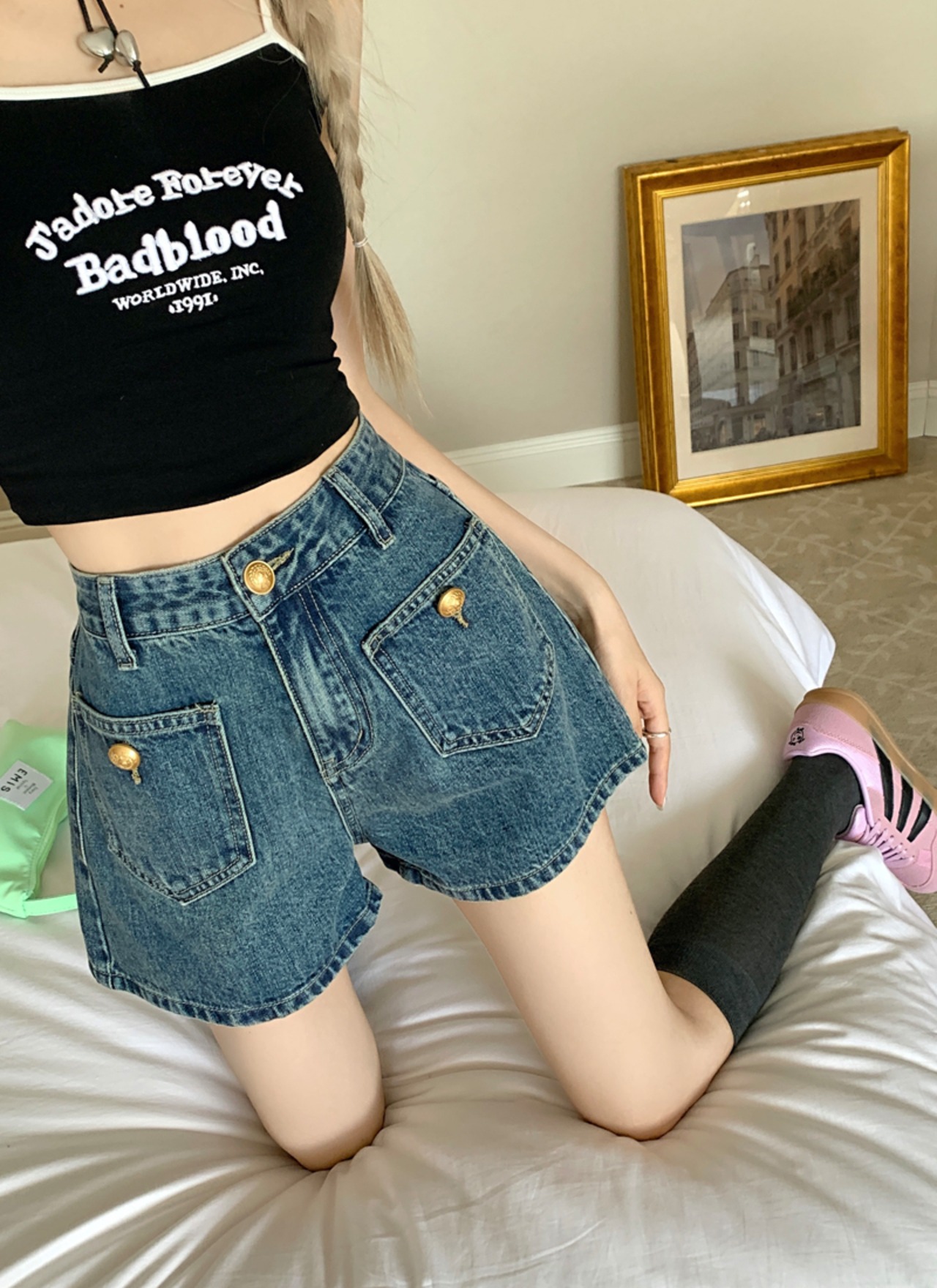デニムショートパンツ パンツ デニム ショート丈 ハイウエスト 夏 レディース カジュアル ガーリー デート お出かけ MH3646