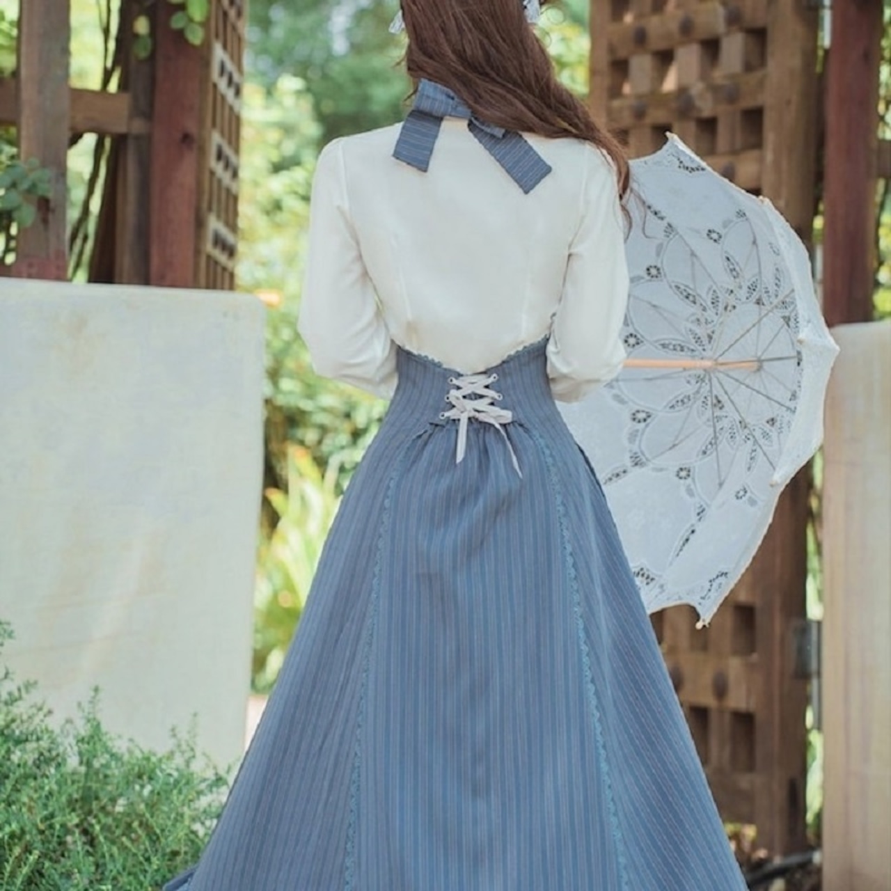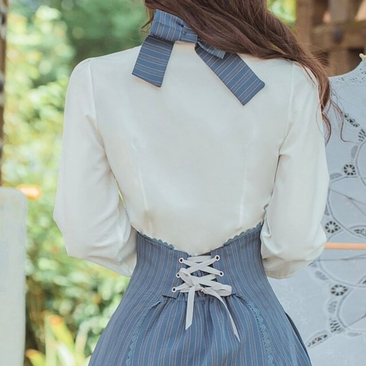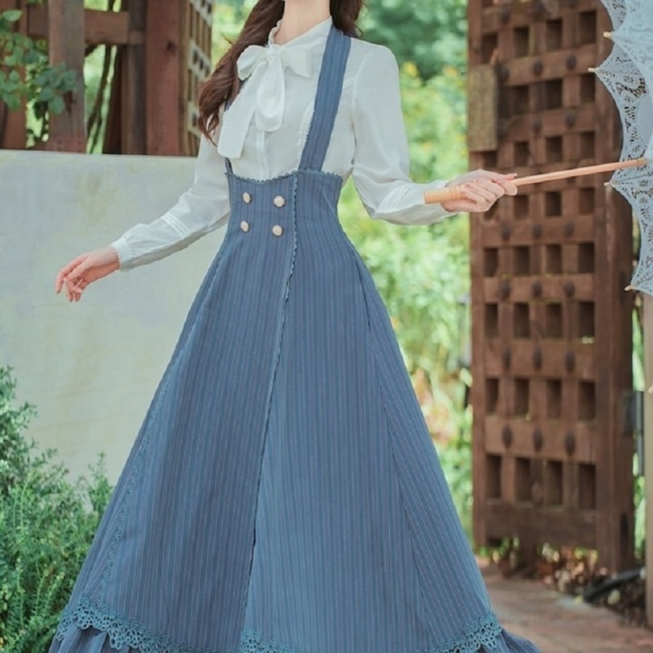 上下セット セットアップ スカート サロペットスカート サスペンダー付きスカート ボウタイブラウス リボン付き フェミニン ガーリー MH3651